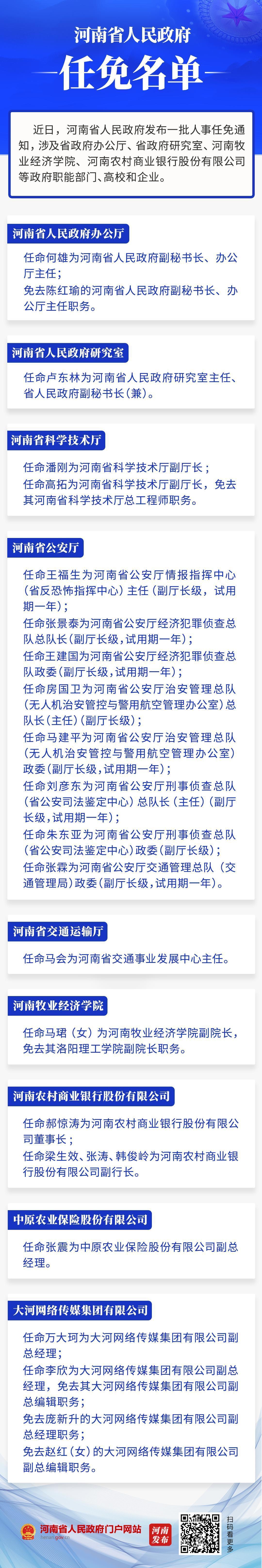 来源:河南政府网 版权归属原作者 如有侵权请联系删除责编:路娇 审核:娄恒推荐阅读河南7市纪委监委通报全红婵,拟被保送天气大反转!河南中雨、大雨、暴雨要来了郑州金融岛停车场将从3月1日起收费快讯!2025年研考国家线发布